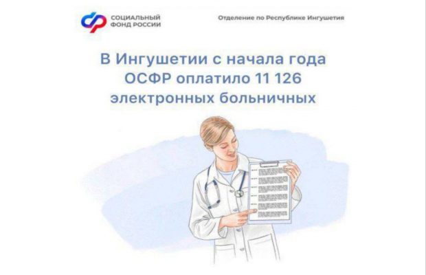 С начала текущего года отделение Социального фонда России по Республике Ингушетия перечислило средства по 11 126 электронным листкам нетрудоспособности.