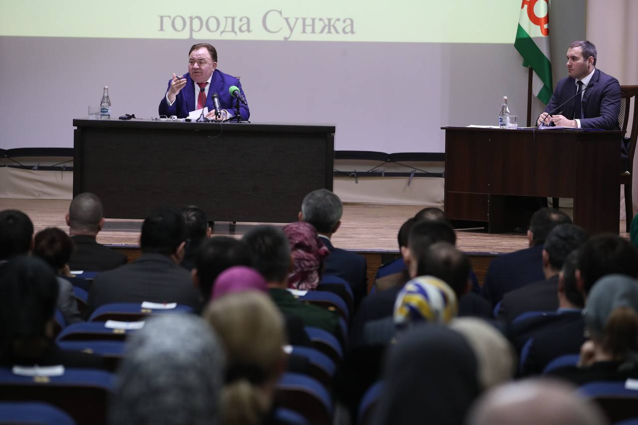 Глава Ингушетии Махмуд-Али Калиматов провел выездное совещание с представителями органов местного самоуправления и общественностью города Сунжи.