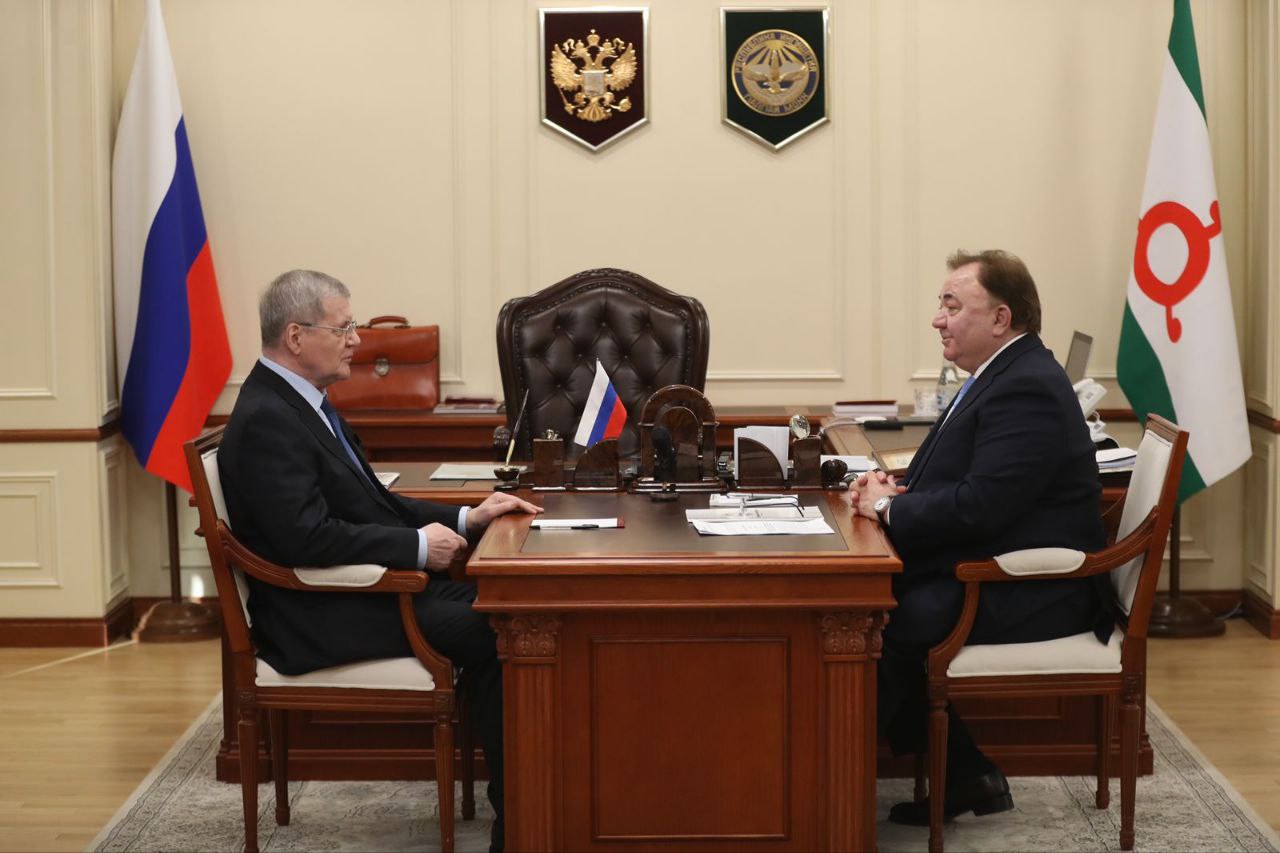 В Магасе состоялась двусторонняя встреча Полномочного представителя Президента Российской Федерации в Северо-Кавказском федеральном округе Юрия Чайки и Главы Республики Ингушетия Махмуда-Али Калиматова.