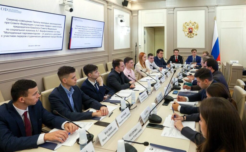 Первый заместитель председателя Комитета Совета Федерации по социальной политике, координатор Палаты молодых законодателей при СФ (ПМЗ) Александр Варфоломеев провел совещание на тему «Молодежный парламентаризм – от диалога к действию», в котором участвовали лидеры молодежных объединений города Москвы Лидеры студенческих движений представили свои инициативы по внесению изменений в федеральное законодательство.