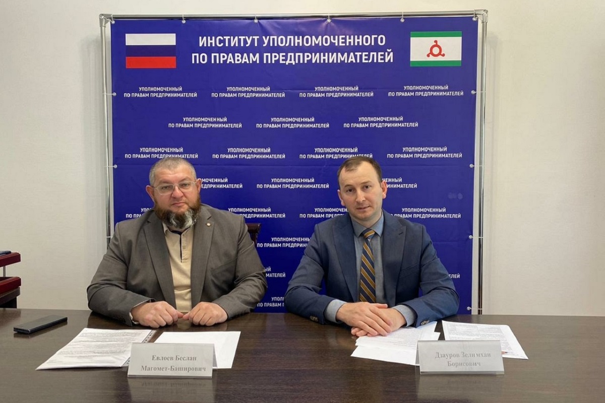 Заместитель руководителя УФНС России по Республике Ингушетия Беслан Евлоев провел рабочую встречу с Уполномоченным по защите прав предпринимателей Зелимханом Дзауровым, на которой