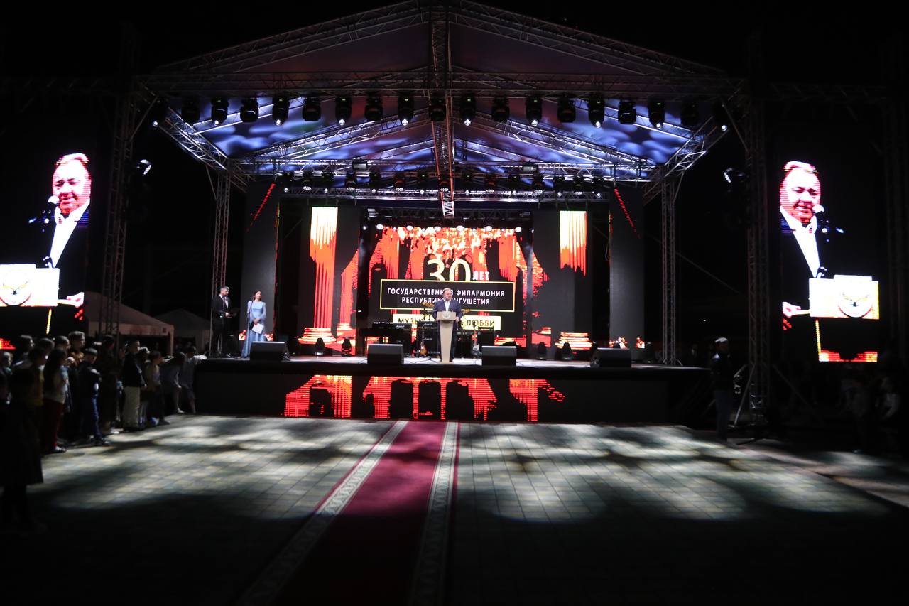 Мероприятие, посвященное юбилею ингушской филармонии, проходило на площади Алания перед Башней Согласия. На праздничном концерте выступили такие известные исполнители, как Дато Кенчиашвили, Тамара Яндиева, Лема Нальгиева, Айна Гетагазова, Мурад Байкаев, Алина Мусиева, Айна Алиева, Роза Мальсагова, Амур Текуев и др.