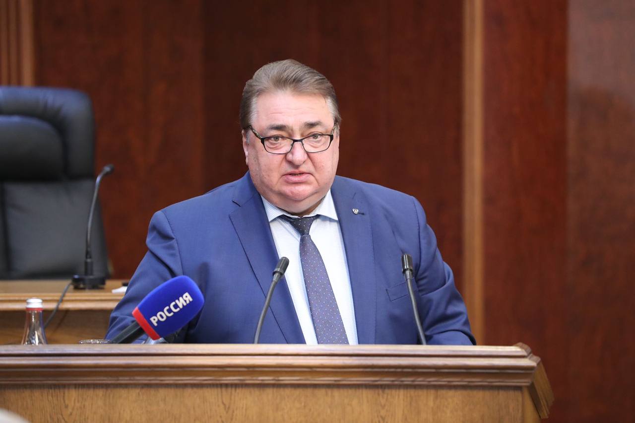 Председатель Правительства Республики Ингушетия В. Сластенин зачитал отчёт Главы Республики Ингушетия М-А. Калиматова о деятельности Правительства субъекта за 2022г.