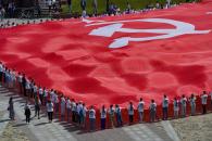 Самое большое Знамя Победы, которое несут в эти дни по священной Кавказской земле юные наследники Великой Победы, имеет 33 метра в ширину и 63 метра в длину. Его