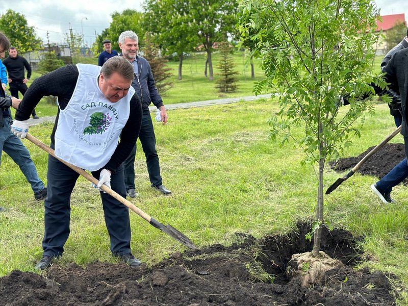 В Назрани у городского пруда высадили 150 саженцев клена, рябины и ясеня, в рамках акции «Сад памяти».
