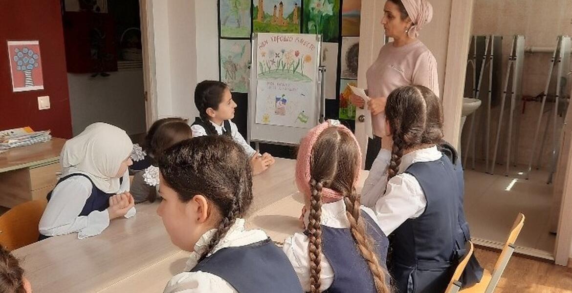 Художественный руководитель Дома культуры сельского поселения Яндаре Мадина Евлоева провела со школьниками беседу «В единстве — сила», рассказав им о прошедшем испытание веками единении Ингушетии с Россией.