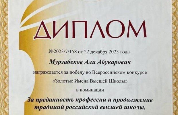 В номинации «За преданность профессии и продолжение традиций российской высшей школы» победа присуждена Мурзабекову А. А.