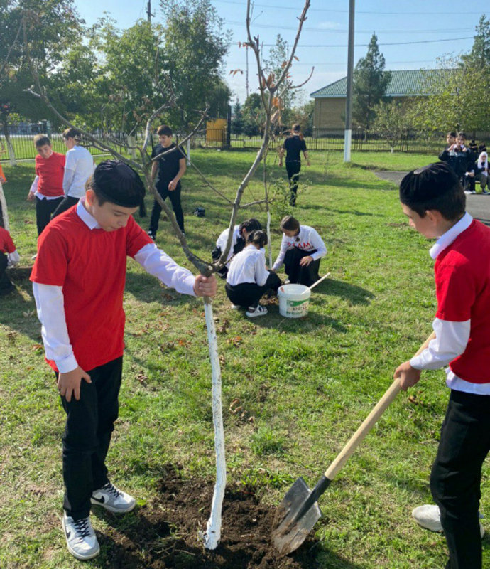 В селе Нестеровское Ингушетии школьники посадили деревья в честь учителей