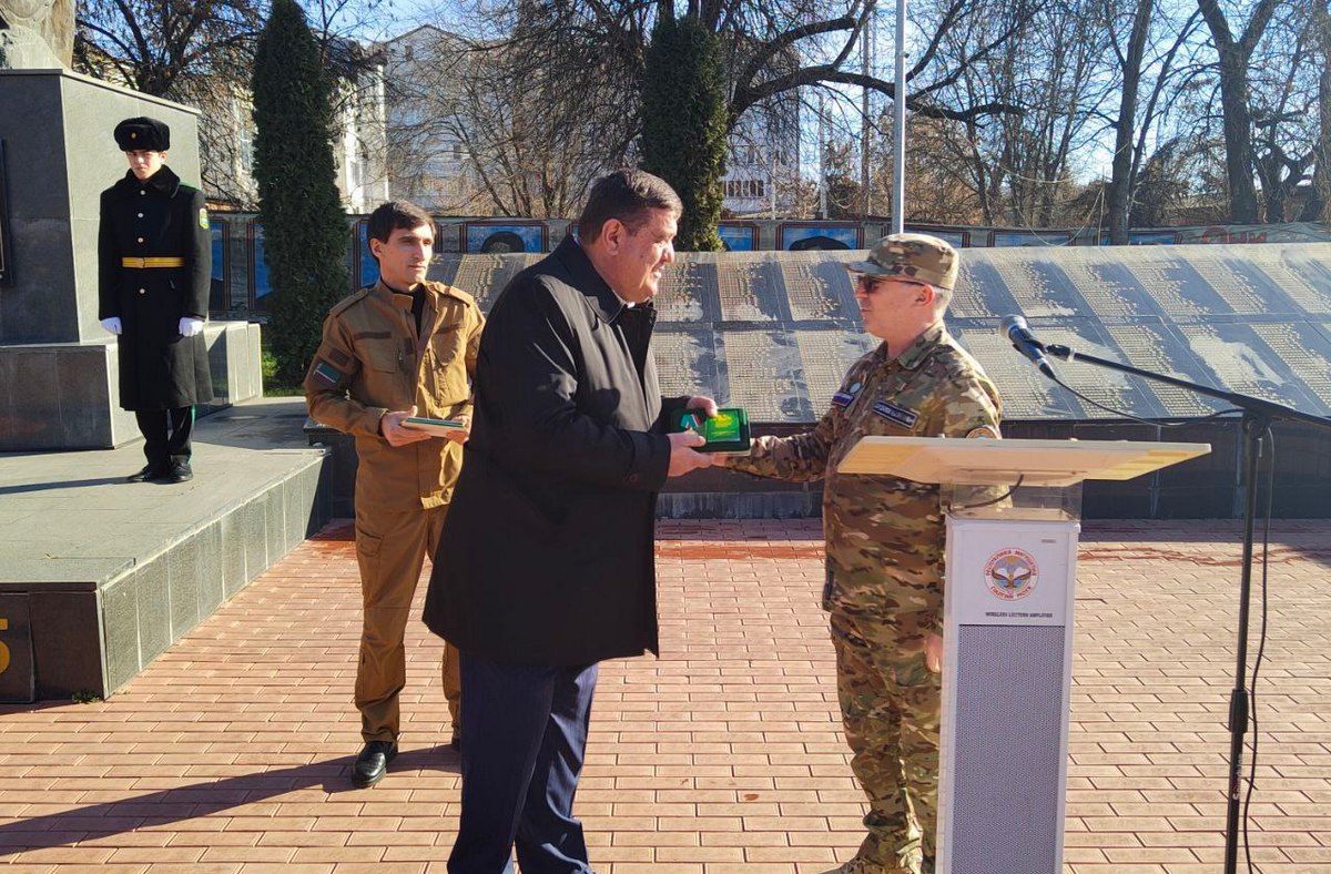 Далее Иса Сардалов от поискового движения России вручил медаль «80 лет Битве за Кавказ» мэру города воинской славы Муссе Галаеву, а также благодарственные письма от Общественной палаты РФ поисковикам Муружеву Магомеду и Эгиеву Батыру.