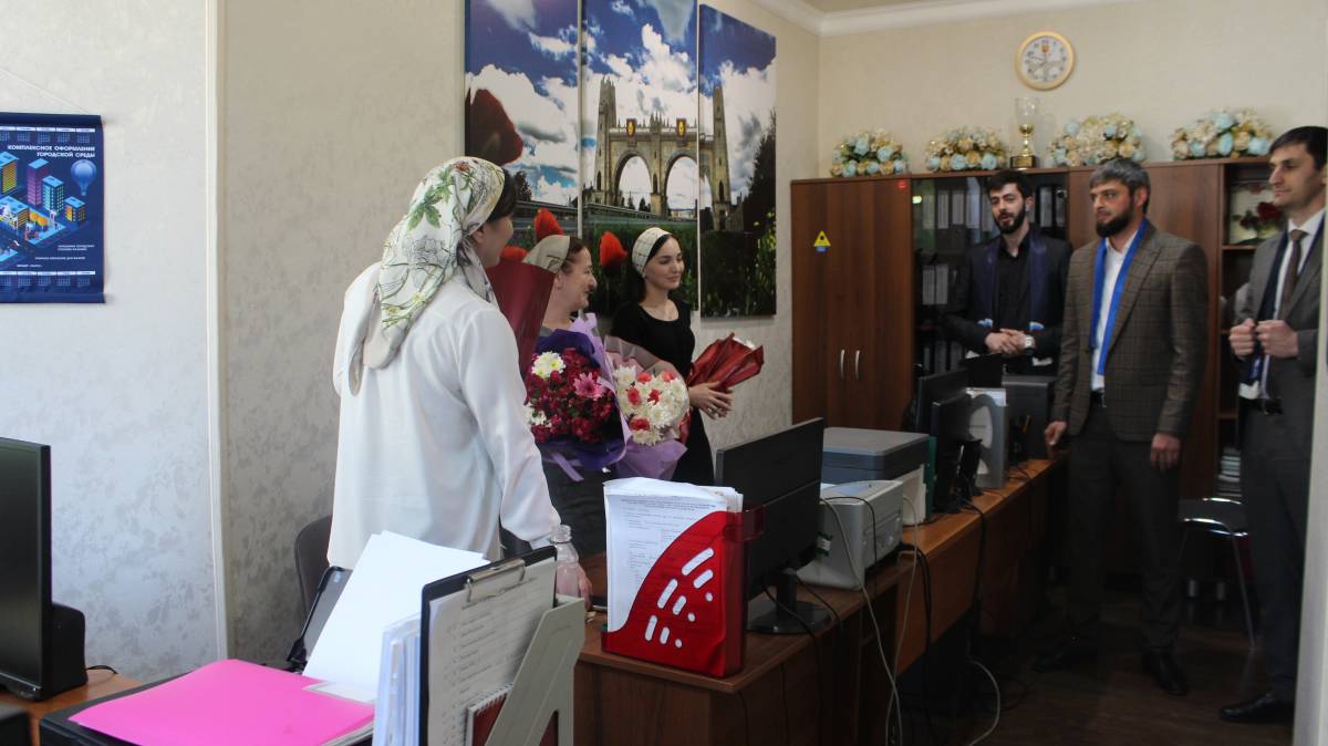 Цветы и подарки всему отделу вручили на рабочем месте - в Администрации города Магас.