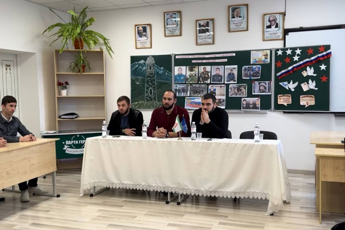 В целях военно-патриотического воспитания молодежи единороссы провели урок с учениками 9-11 классов СОШ №18 г. Малгобек