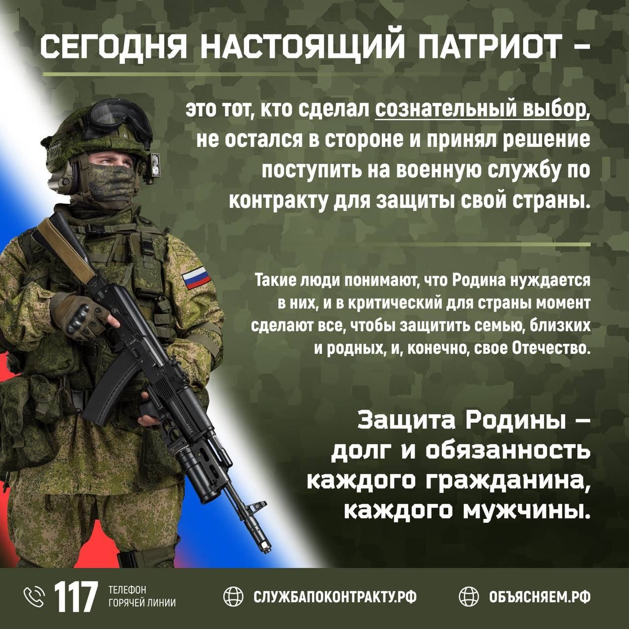 Сегодня настоящий патриот – это человек, который сделал сознательный выбор и не остался в стороне. Он принял решение поступить на военную службу по контракту, чтобы защитить свою страну. Такие люди понимают, что в критический момент Родина нуждается в них, и они готовы сделать все, чтобы защитить свою семью, близких и родных, а также свое Отечество.