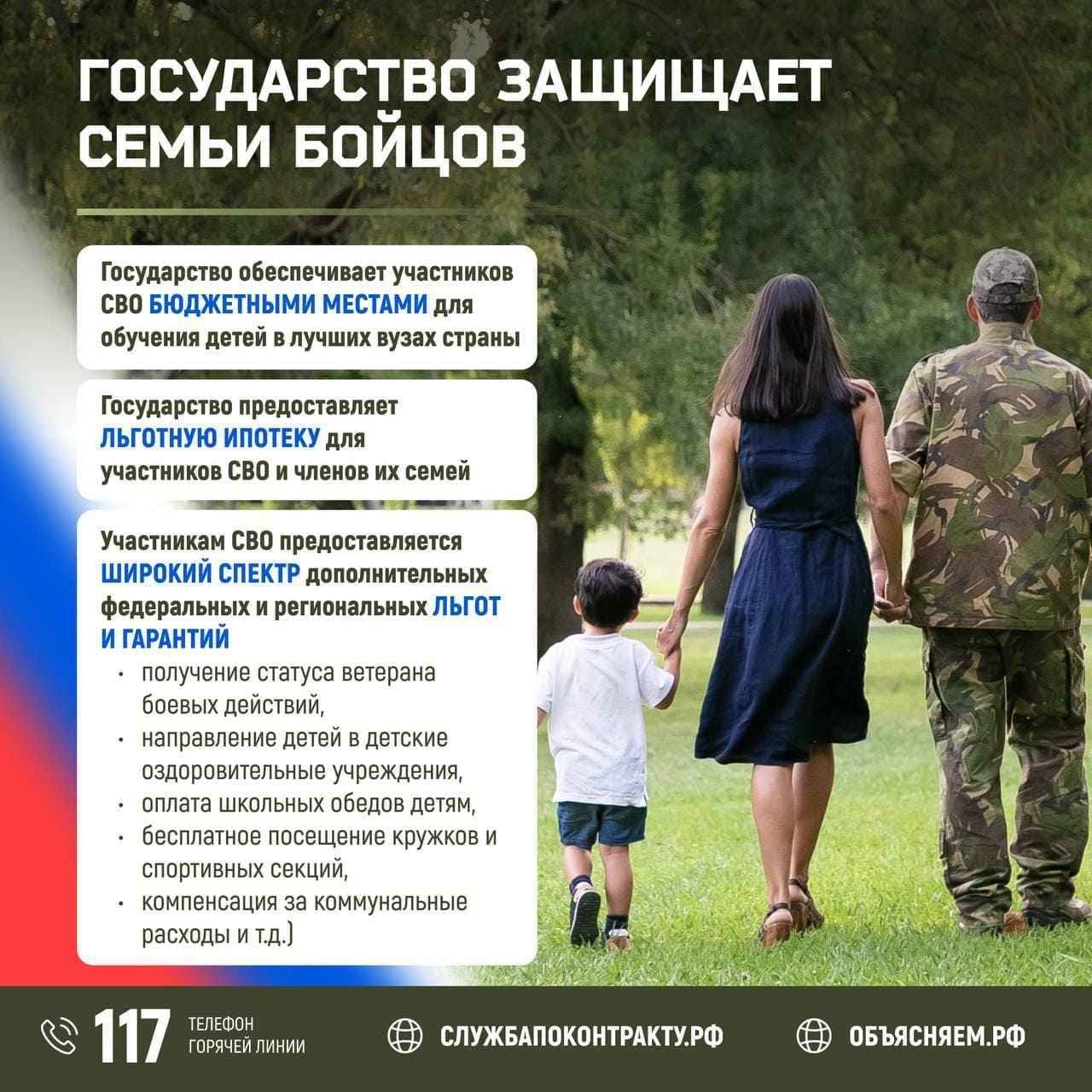 В то время как бойцы защищают свою страну на специальной военной операции, государство обеспечивает поддержку их семьям: