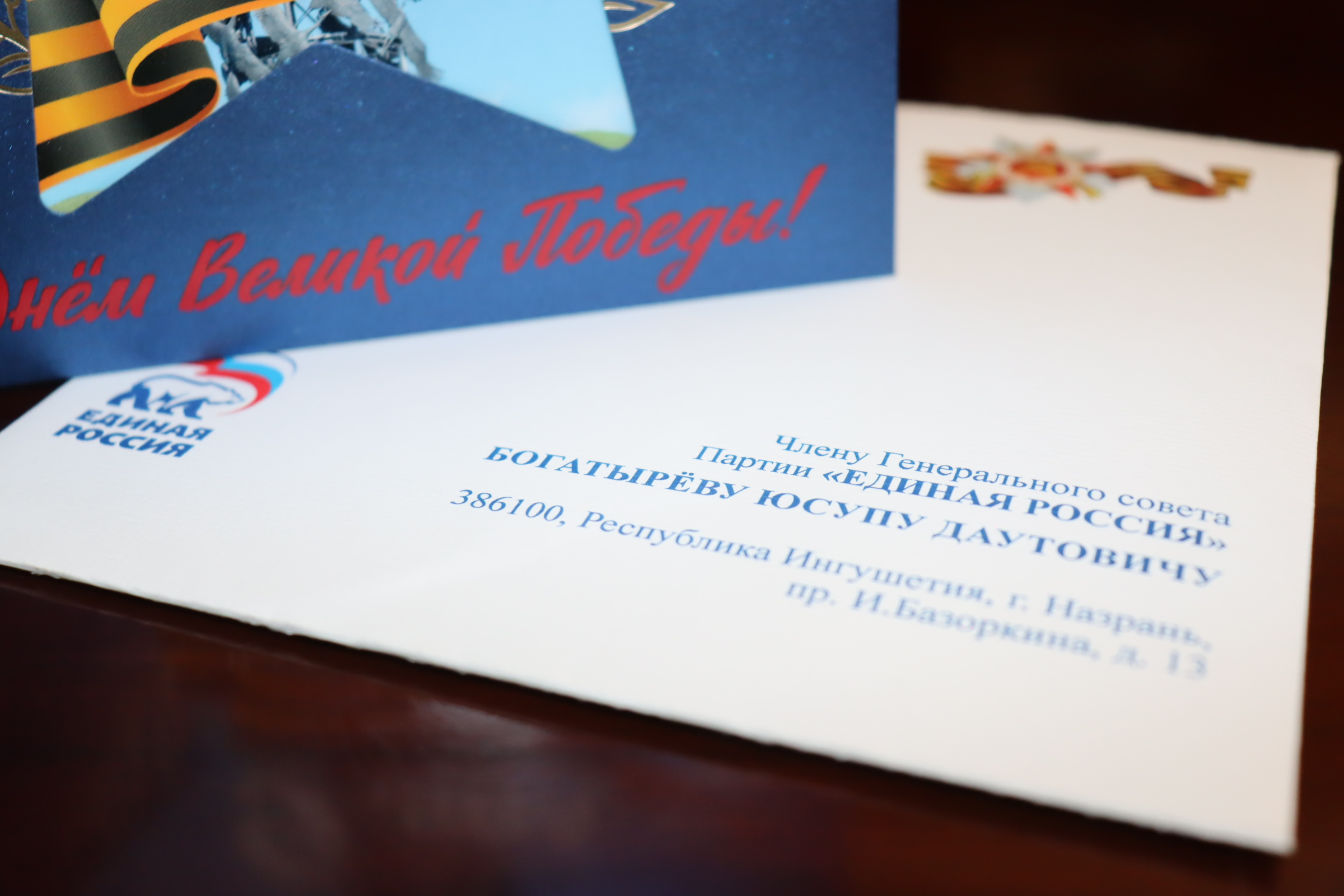 Дмитрий Анатольевич Медведев поздравил члена Генерального совета Партии Юсупа Богатырева с Днем Победы и отправил ему поздравительную открытку