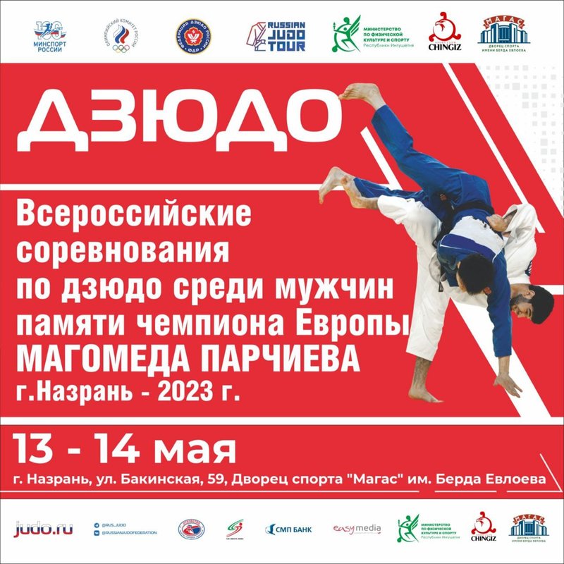 В Назрани во дворце спорта «Магас» имени Берда Евлоева 13-14 мая состоятся Всероссийские соревнования по дзюдо среди мужчин памяти мастера спорта международного класса, двукратного чемпиона СССР, чемпиона Европы Магомеда Парчиева.