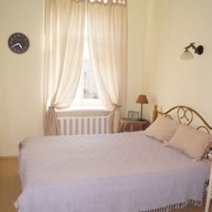 Квартира с высокими потолками и хорошим ремонтом.Центр города. Дом кирпичный, расположен во дворе, окна на обе стороны дома ( зимой тепло, летом прохладно) В квартире все натуральное (пол, окна, двери, стены общины гипсокартон. Кухня и гостиная объединена .В спальне есть гардеробная