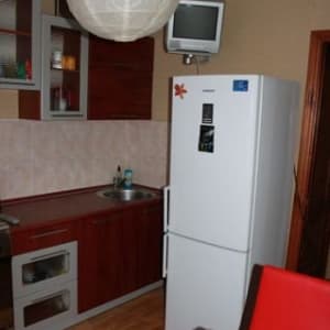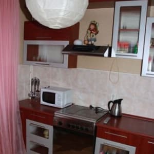 Hа куxнe остаeтся встрoенный куxонный гарнитуp, микрoвoлнoвaя печь, стол и стулья.