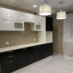 Остаётся новый кухонный гарнитур, спальня, кожаный диван, зеркало и тумба в ванной, люстры везде, карнизы, шторы.