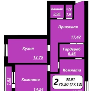 - Общая площадь: 77.1 м²