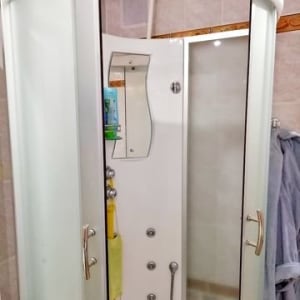 Межкомнатные и входная дверь, фасады кухонного гарнитура все из натурального дерева. Санузел раздельный, отличная сантехника, ванна джакузи + душевая кабина,