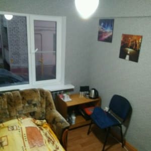Есть диван, холодильник, микроволновка, телевизор, чайник.