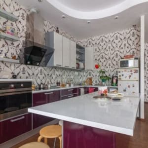 На полу кварц-виниловая плитка. Ванная комната кафель. Отопление и подогрев воды – электрокотёл.